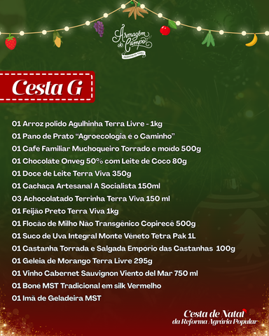 📦 Cesta Tamanho G: Perfeita para garantir uma ceia farta e diversificada, repleta dos melhores sabores do campo agroecológico. Essa cesta contém: